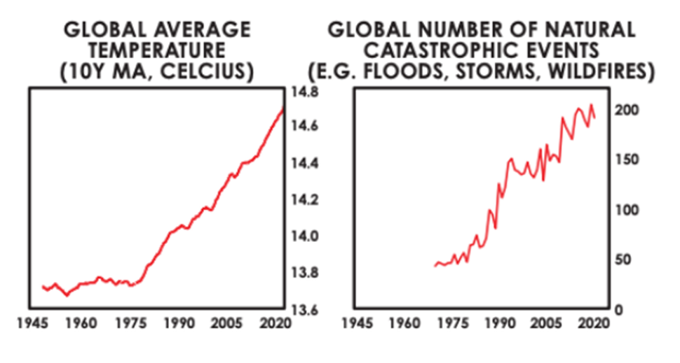 4. Regarding the forces of nature (droughts, floods, and pandemics), clearly conditions are worsening. The world faces a rising trend of average temperatures and more natural disasters arising from them.