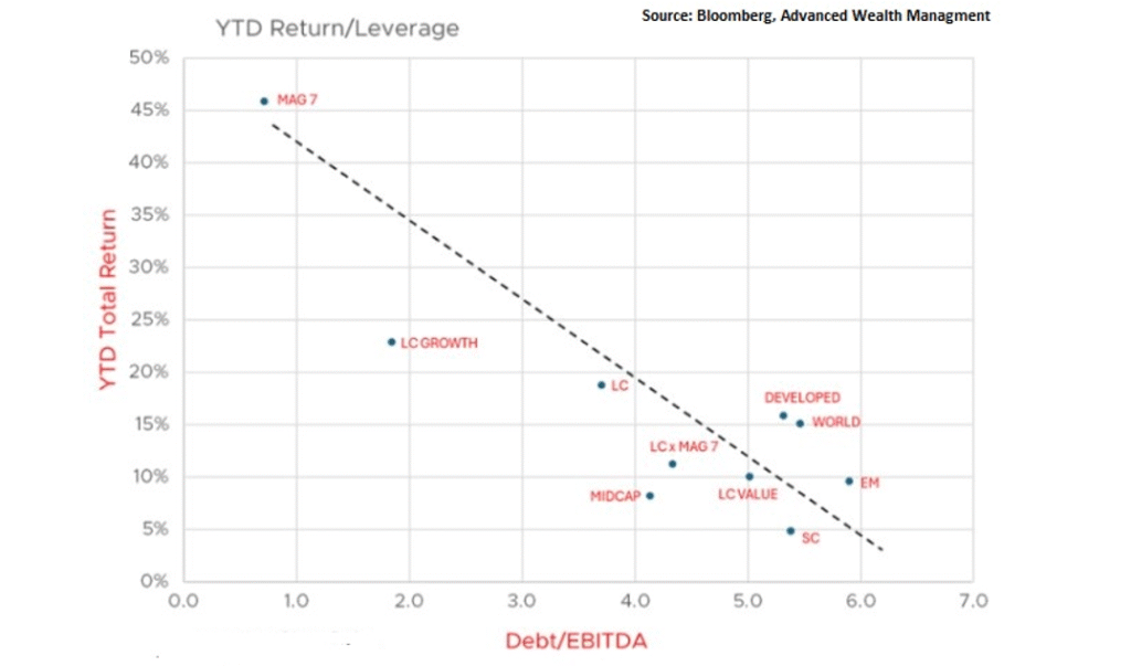 The anticipated easing of borrowing costs is expected to act as a catch-up catalyst for earnings and overall performance among highly leveraged companies. Lower interest rates will reduce the cost of servicing debt, allowing firms to redirect funds towards growth initiatives, operational improvements, and investment in technology. This shift could enhance profitability and improve cash flow, which are critical for companies that have been struggling under high debt burdens.
